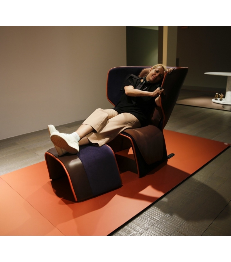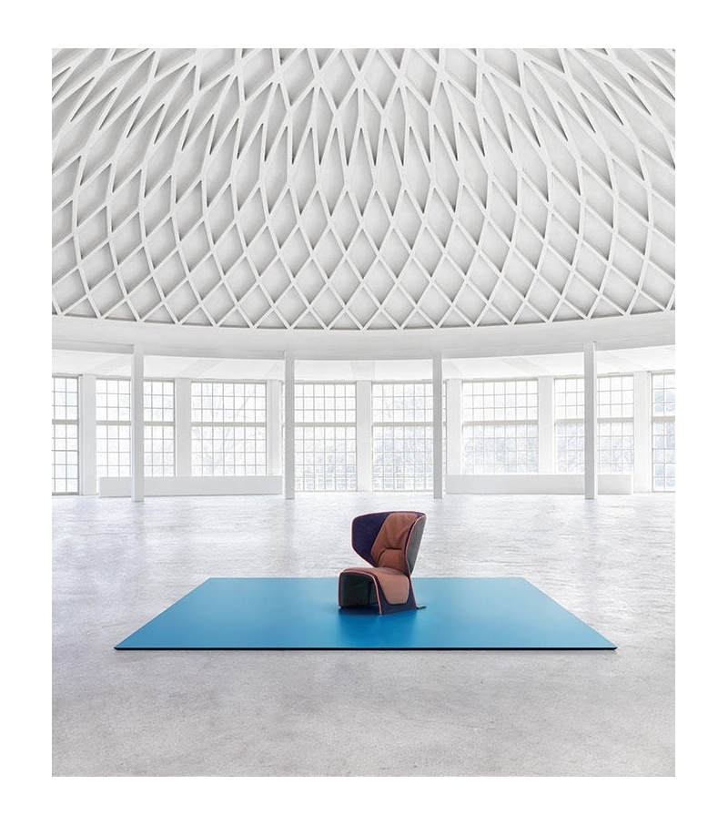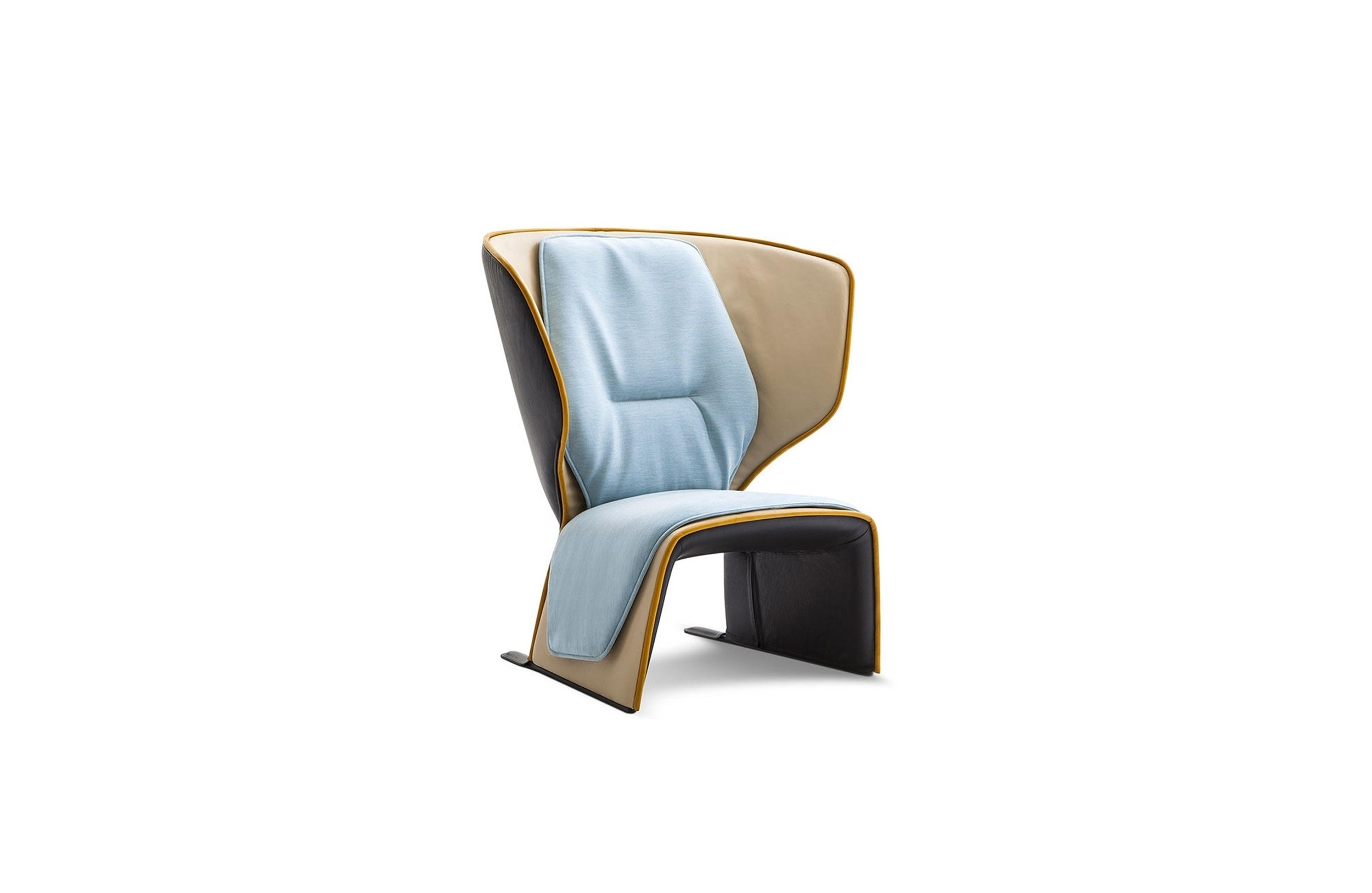 这款独特的扶手椅融合了传统和现代特色。其材料和颜色的组合适合多种用途:内部的软衬垫与外部的刚性元素和谐对话,染色皮革包边装饰突出了弯曲的线条。面料紧贴扶手椅的曲线,与外壳严谨、规整的结构形成对比,有五种不同颜色的标准组合。这款惬意的软包扶手椅的靠背在压力下可倾斜约12°,并可自动地返回到原来的位置,进一步增加了舒适感。结构:座椅和靠背采用钢管框架,并带有固定带。填充:密度可变无氟聚氨酯泡沫。底座:黑漆钢材,端部包覆黑色马鞍皮或闪光皮。软包饰面:布艺或皮革。