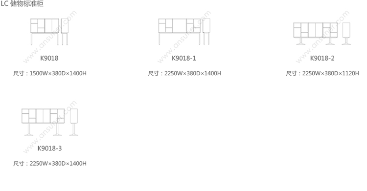 LC储物标准柜 系列尺寸/示意图