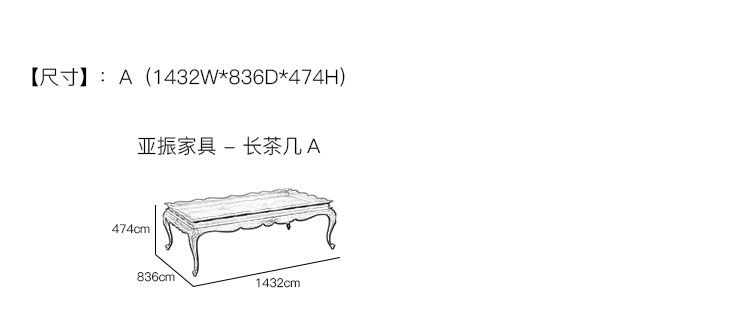 亚振家具 - 长茶几 产品尺寸/示意图