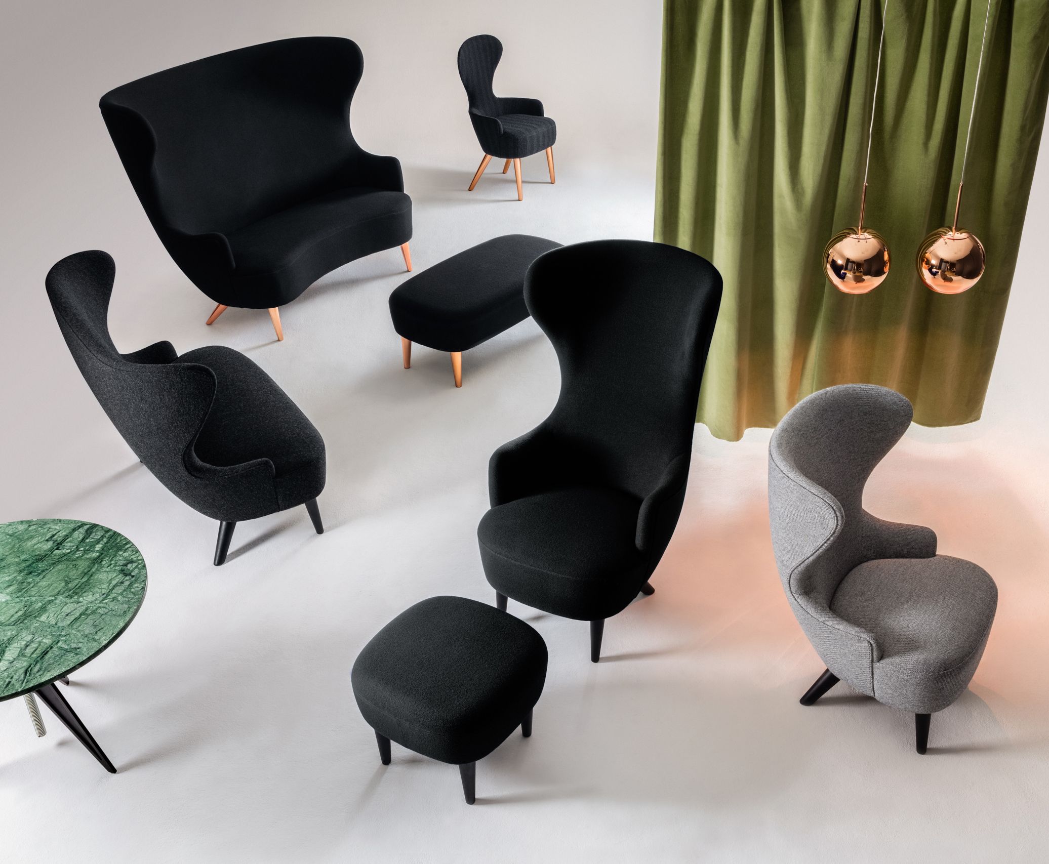 Wingback的灵感来自传统的17世纪Wingback和气球背部原型,是为Shoreditch House会员俱乐部开发的。它富有表现力的曲线使设计师可以将空间中心的Wingback指定为雕塑式的干预,而不仅仅是座位的一部分。机翼为移动电话的使用提供了方便的声保护,并为快速打盹提供了一个头枕。