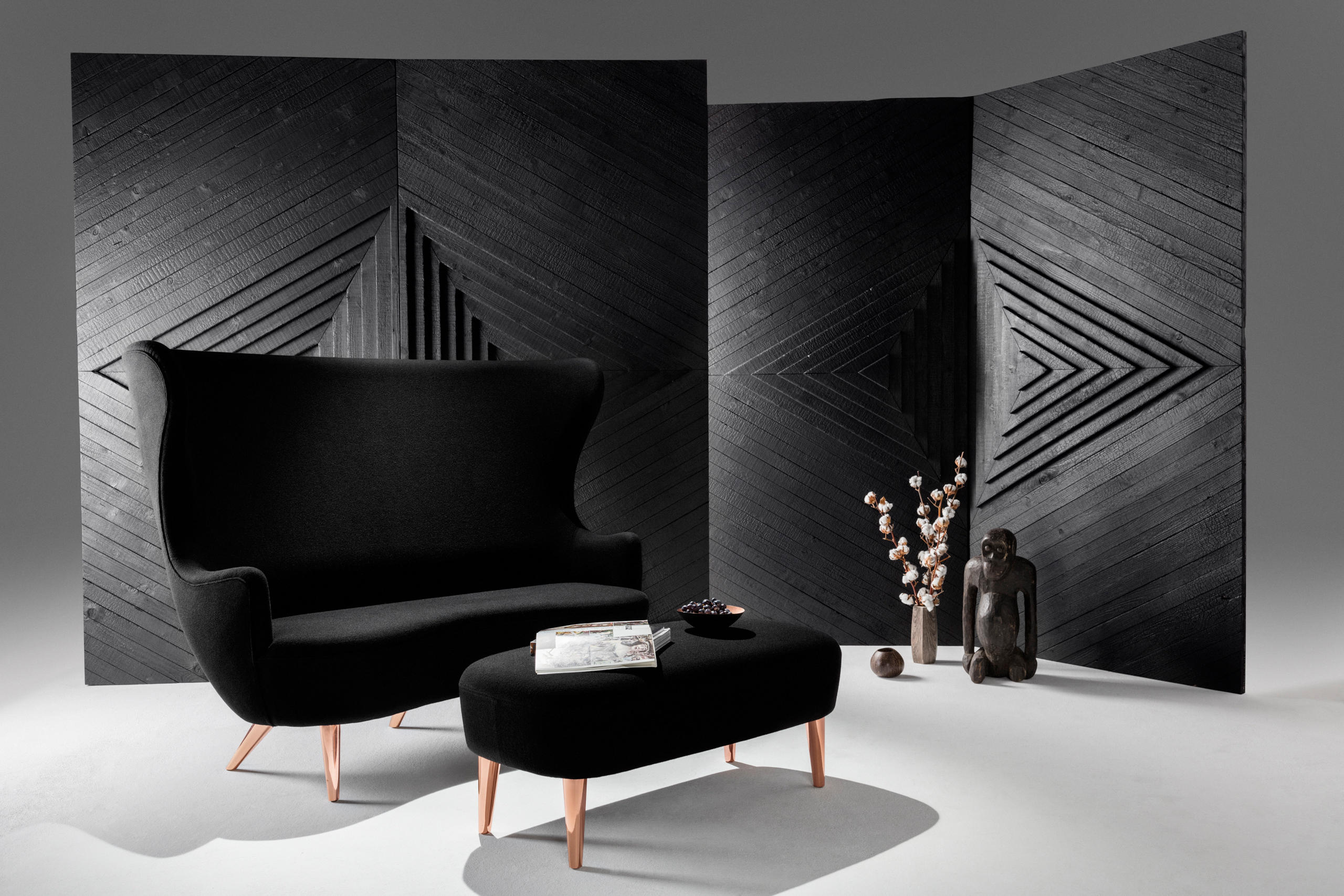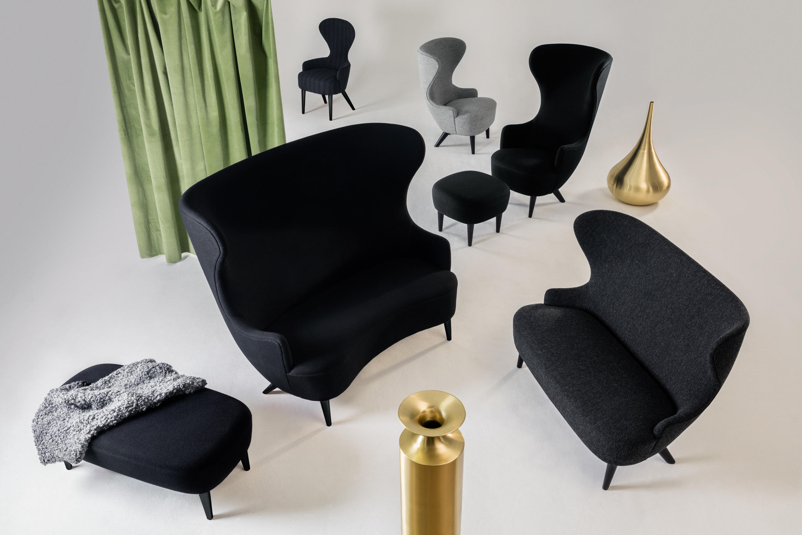 Wingback是一系列英国重新掌握的经典之作。 该系列包括一把椅子、一把餐椅、沙发和一张脚凳。所有的都有各种各样的颜色和Kvadrat织物,椅子腿是实心,天然或黑色橡木和镀铜钢。