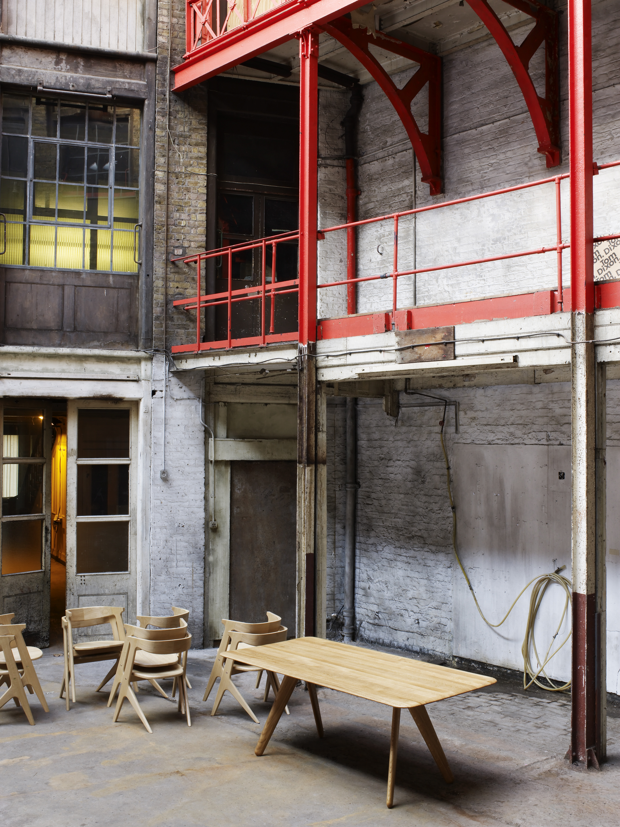 用黑色或天然漆进行处理。 Slab集合包括凳子,椅子,餐桌和桌子。