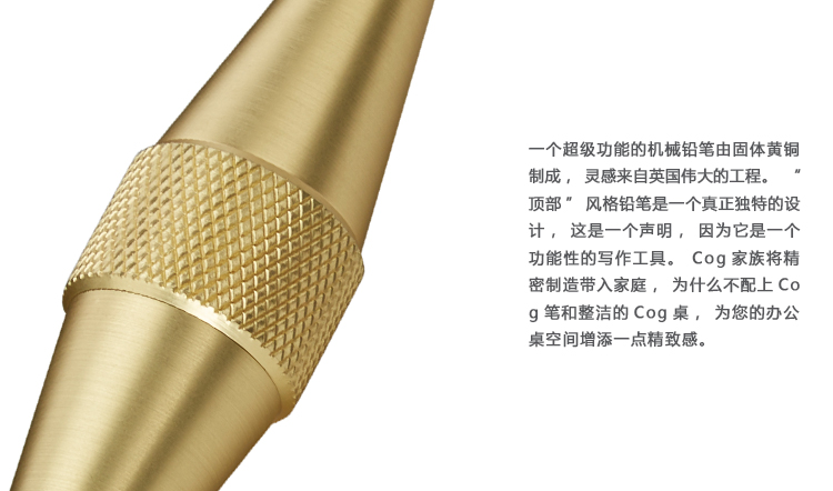 性的写作工具。Cog家族将精密制造带入家庭,为什么不配上Cog笔和整洁的Cog桌,为您的办公桌空间增添一点精致感。
