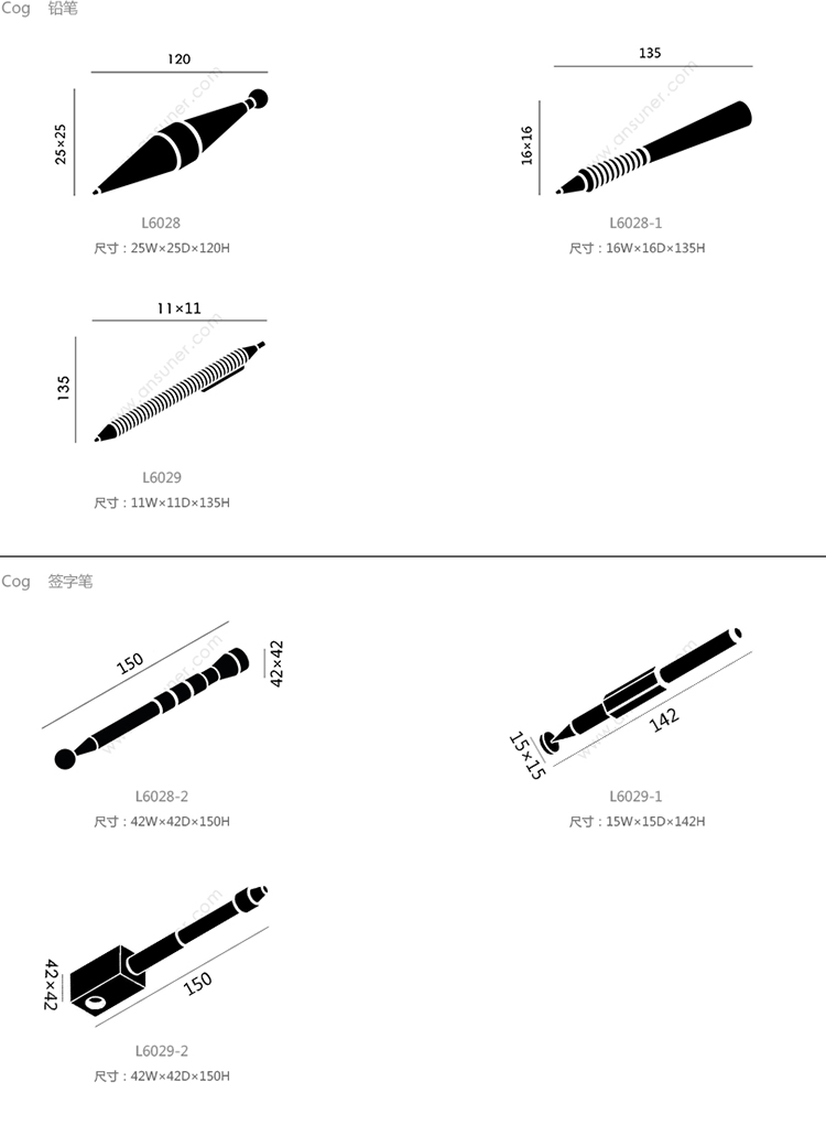 Cog 铅笔 系列尺寸/示意图