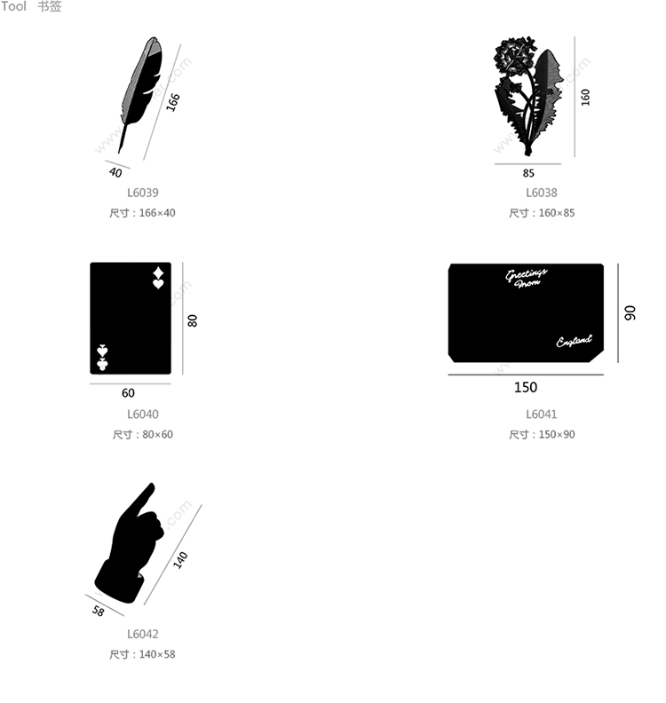 Tool 羽毛书签 系列尺寸/示意图