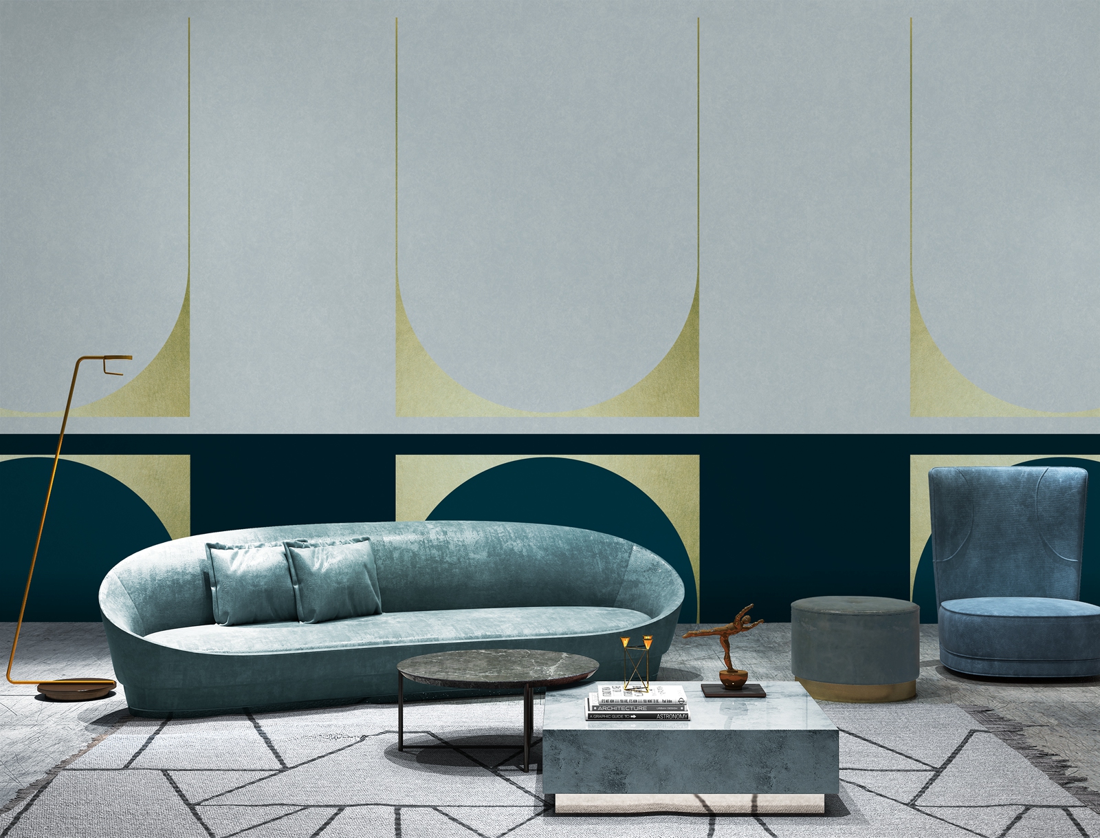 空间几何系列以点线面的构成作为创作主题,利用不同的构成方式,创造多样化的视觉效果,我们放弃了具体的内容和情节,突出运用这些纯粹的绘画语言来表现艺术形式的纯粹美;点、线、面和构成手法,就像是大厦的基石一样,看起来毫不起眼,但力量却无比强大,它是我们不断探索的源泉和情感表达的桥梁