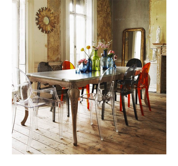"Charles Ghost Stool(查尔斯鬼凳),由鼎鼎大名Philippe starck(菲利浦·史塔克)设计;进口高透明度工程塑料PC一体成型,简洁新潮,高净度透明材质很好的表现出产品的时尚和百搭,可以毫不夸张的说,几乎配任何装修风格他都很灵,而且显品味,空间感也很好,如果你的吧台空间不大的话,放这款吧椅视觉很通透,不占地方。"