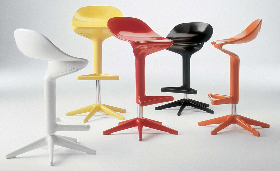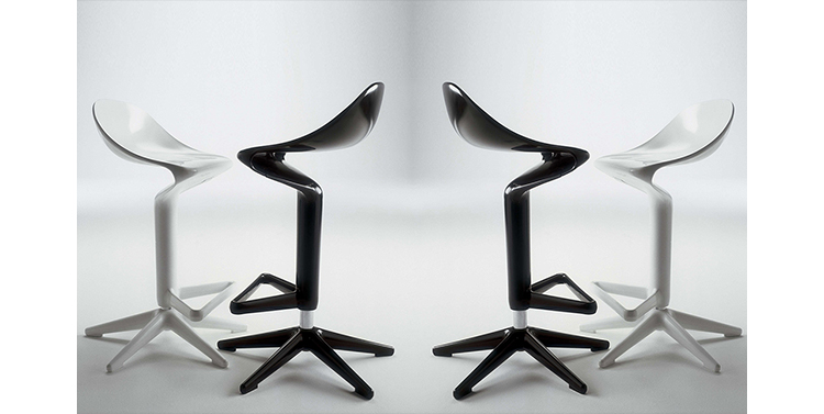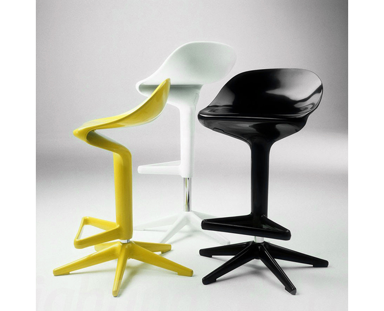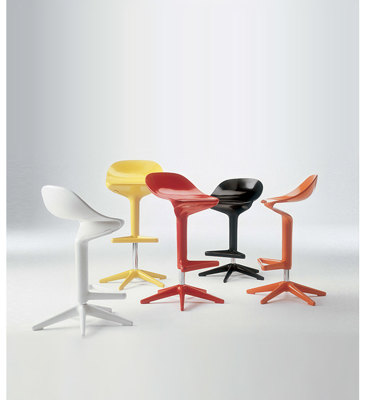 这款椅子设计灵感来自于弯曲的勺子。侧看优美的曲线设计,给空间增加动感。隐藏式的高度调节阀使整体造型更加完美。宽阔的底部支撑如吸盘牢固地吸附于地面,可防止倾覆。当您坐入其中作微微的颤动,特别的椅背给您带来不一样的体验。