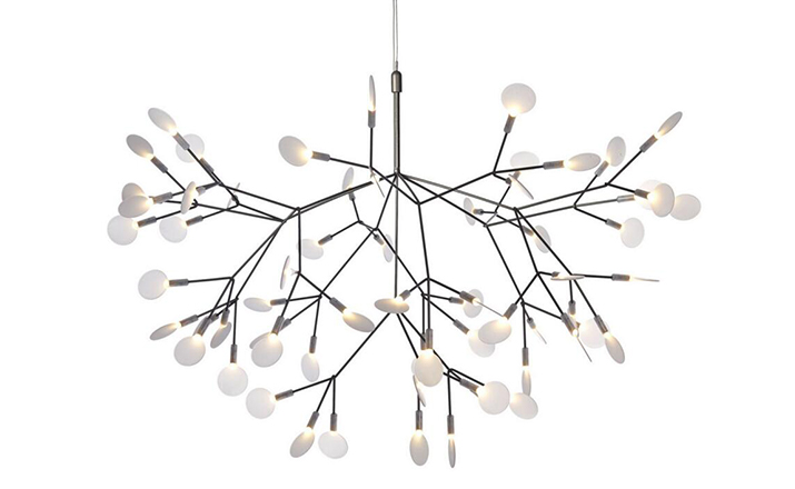 The decorative LED lamp inspired by the Heracleum Plant now comes in two sizes. Theleaves ramify from a branch creating a very technixal,natural structure,By using the technique of coating conductive layers.Adesign not possible with normal wires.