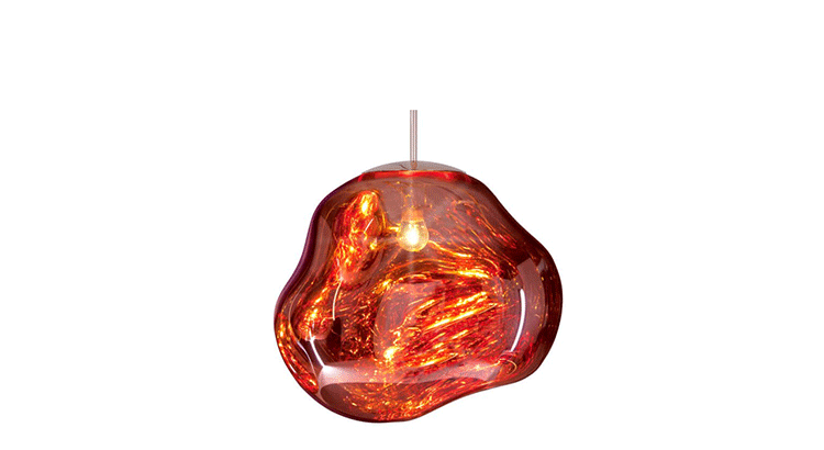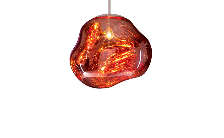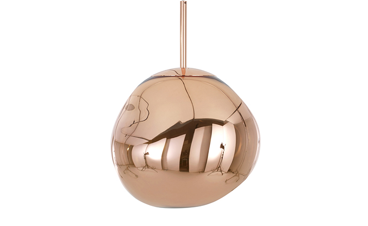 With Melt, Tom Dixon's experiments in the technologically advanced field of vacuum metallization takes on a new twist. Melt is a series of distorted spherical pendants born from a collaboration with Swedish radical design collective Front. The light bouncing and reflecting around the uneven surfaces creates a dramatic melting hot blown glass effect and an ethereal luminosity on their surroundings. Melt is translucent when on and mirror finish when off. Its internal luminosity is visible in full daylight. Available in two sizes and three finish options.