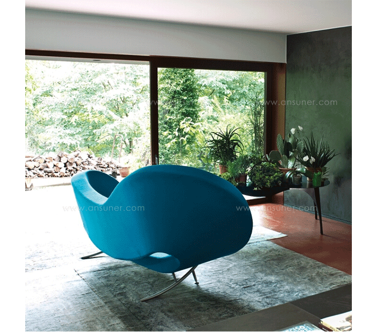 victoria & albert sofa(维多利亚和阿尔伯特沙发)系列提出一种创新,但舒适和舒适的设计,设计者是以色列著名设计师Ron Arad。设计造型为两张扶手椅伴着一个沙发,能够调解的设计和功能相结合的研究和技术保证舒适和舒适的地方休息。取名是为了向对伦敦著名的"Victoria & Albert"博物馆致敬。被誉为 20 世纪最重要的设计师之一,Ron Arad 出生在特拉维夫,在搬去伦敦前,就学于耶路撒冷艺术学院,在建筑电讯派创始人彼得·库克下学习设计。Ron Arad 成功地建立了独特的设计风格,使用的材料和概念的非正统组合。制作采用防霉实木内框架、进口羊毛绒布、内部填充高密度沙发棉、不锈钢脚架。