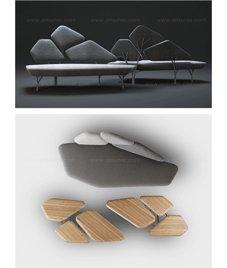 “波”是一个光沙发受到石头松树波勒兹别墅的罗马。 金属结构再现了分支网络和支持缓冲,合奏创造一个舒适的景观。
