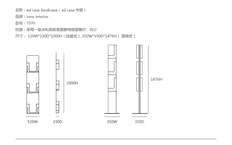 挂壁式 520 w | 230 d | 1000 h