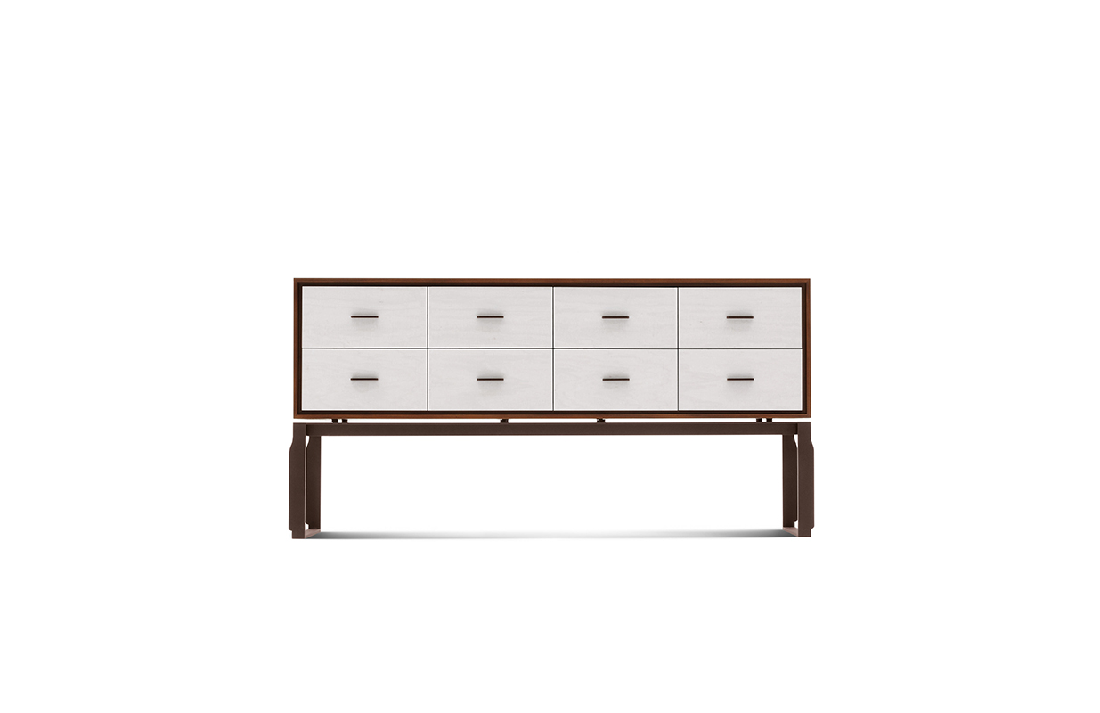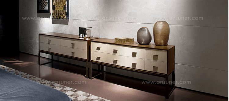 4或8抽屉衣柜在核桃卡纳莱托木(fin.11)。 抽屉方面都有两个版本:白色小提琴状的东西画梧桐或者金箔装饰。 抽屉里配有沉默系统总提取后退指南。 处理和金属基体上铜的颜色。