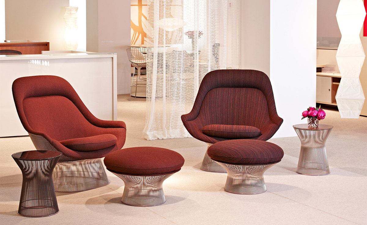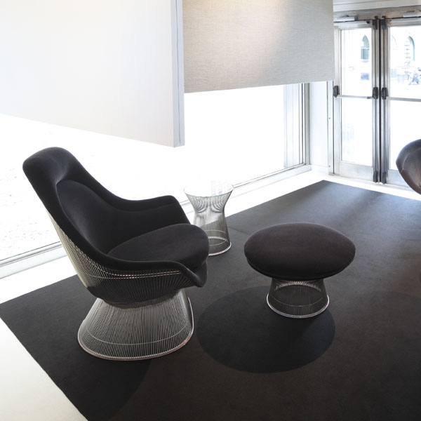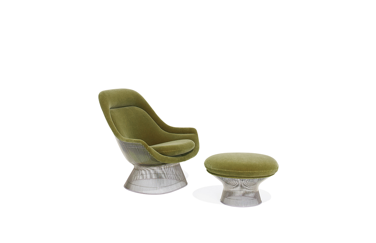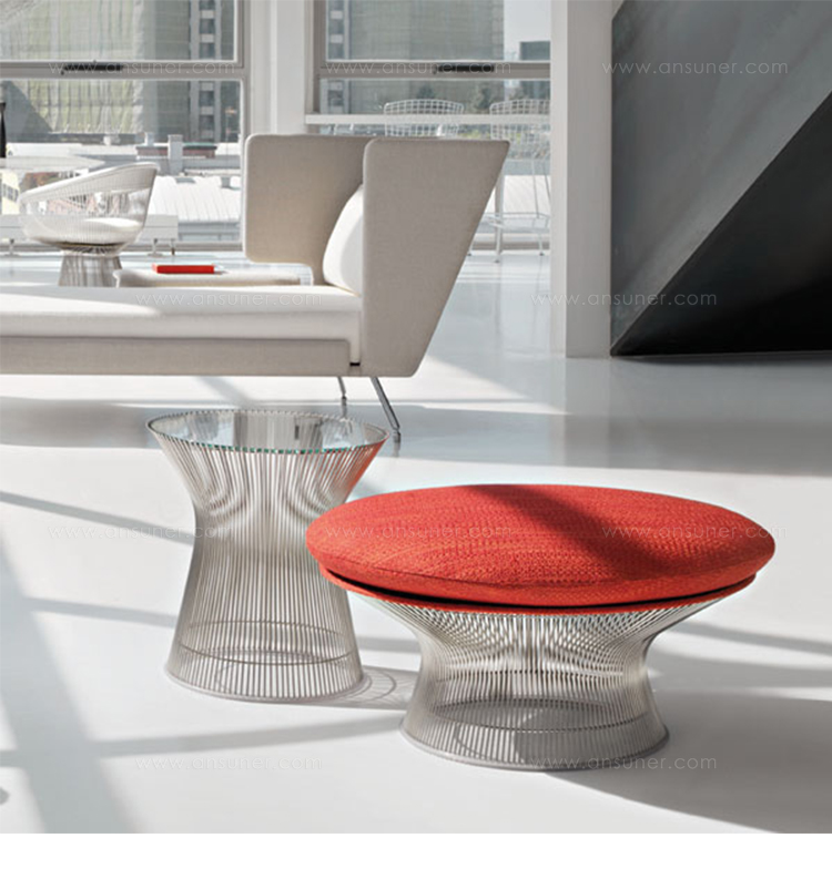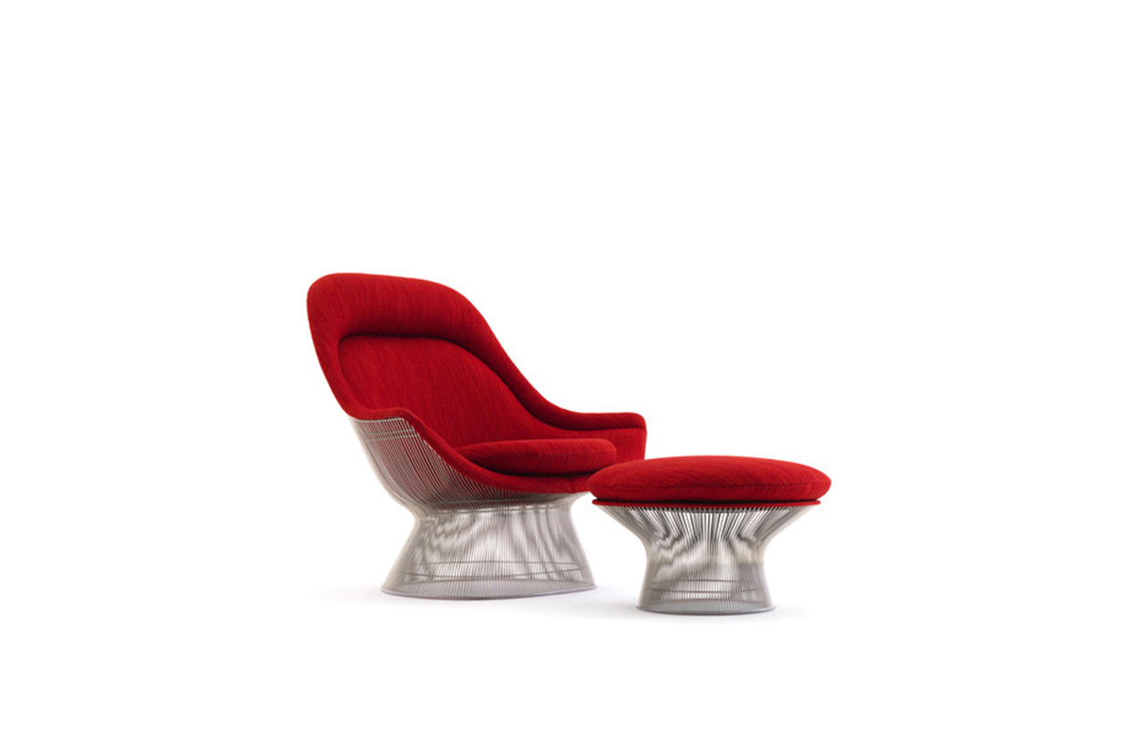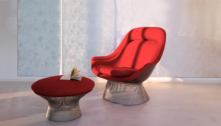 在1960年代,沃伦Platner钢丝变成了雕塑家具收集、创建现在被认为是现代的设计图标。 Platner收集独特的和谐的形式是由焊接钢线材圆形镜框,生产波纹效应和捕捉装饰、温柔、优雅的品质Platner试图实现。 手的安乐椅上,一个流行的雕塑图标削几何形状和颜色,是弯曲的舒适的缩影;它可以有或没有脚踏,也可以单独使用。