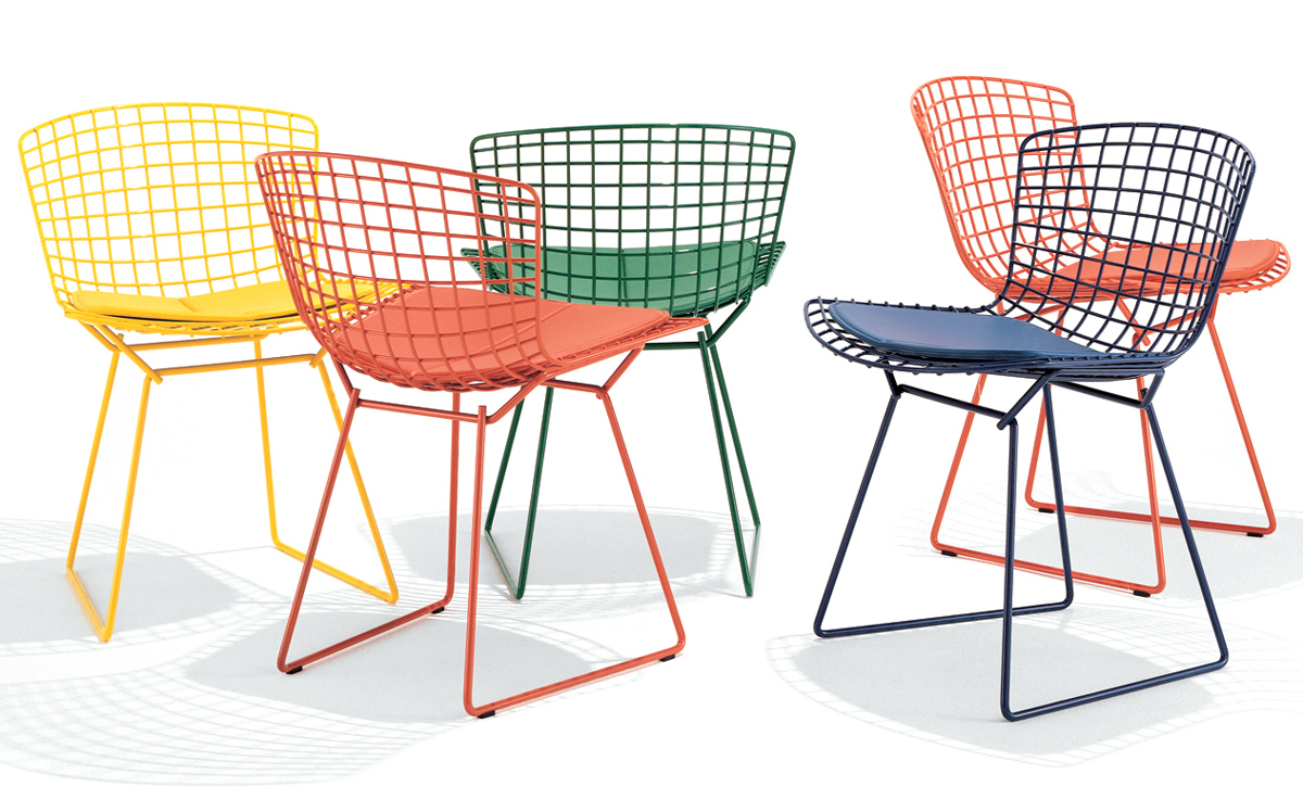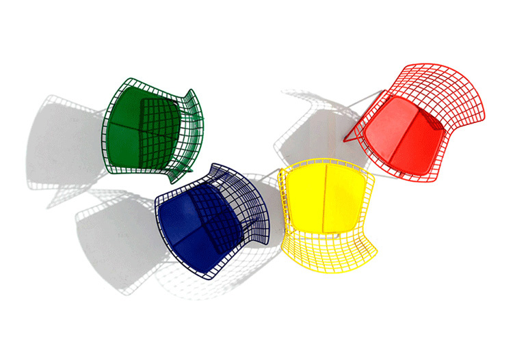 Bertoia Chair 是 Harry Bertoia 延伸其珠寶設計與金屬製作概念的一件兼顧實用與藝術的作品,精緻的外觀下,卻不失椅子功能上的舒適及耐用性