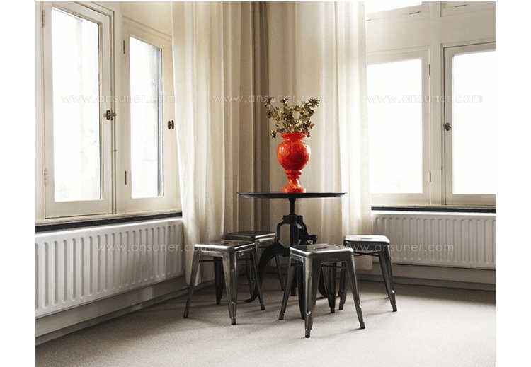 tolix chair(tolix椅)一把有味道、有态度的椅子,据说它最开始被使用在一艘战舰的天气预报房间里,故事的真实性与否不得而知,但是不影响其成为享誉世界的著名设计家具,1934年由Xavier Pauchard设计,早期是作为户外用家具设计,力图展现法式慵懒而闲适的气质,经年而来被全世界时尚设计师所宠爱,从室外扩展到家居、商业、展示等多个用途,而此椅也不负众望在各类空间中均有上佳表现,特别是近年来与混搭、乡村、美式、怀旧、北欧简约、中式等主要装修风格搭配,都呈现出独特的韵味,也被时尚界赞为“百搭第一”椅,可以用在酒吧,餐馆,咖啡馆等等地方,之后通过改进,设计出有扶手版本的tolix armchair(tolix扶手椅),高背版本的tolix high back bar stool(tolix高背吧凳),宽背版本的tolix wide back bar stool(tolix宽背吧凳),及tolix bar stool(tolix吧凳)和tolix mini stool(tolix迷你凳)。制作采用进口冷轧钢、磷酸防锈处理、静电油漆喷涂工艺、坐面为木板或PU海绵坐垫,颜色可选。