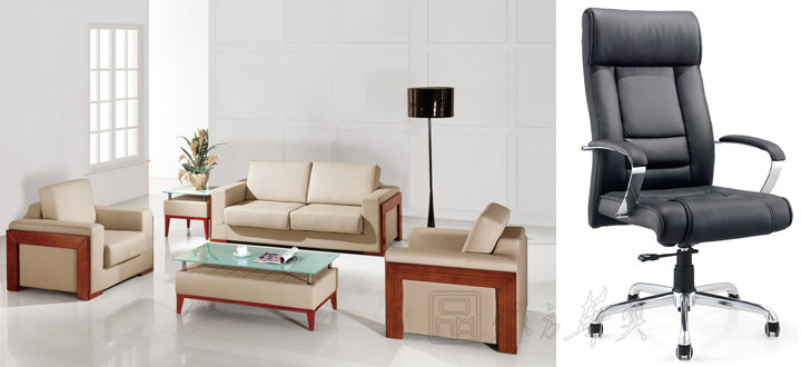 ※ 上图为系统配套沙发(实木+真皮)和真皮大班椅,此产品可以根据客户的喜好进行其他的挑选。