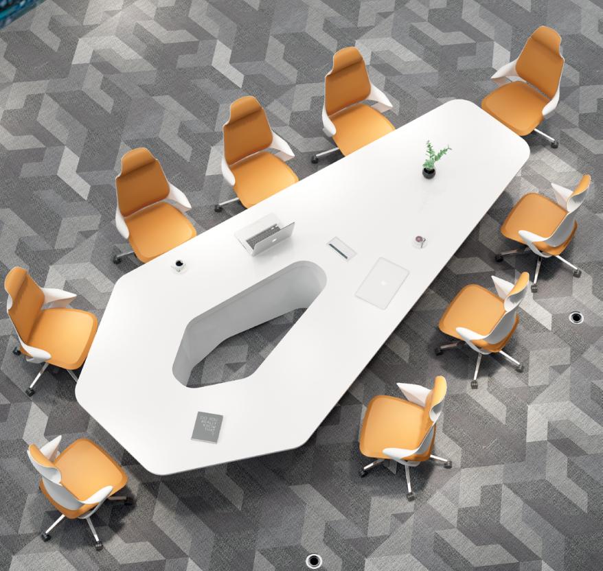 会议桌秉承系列特有的稳重和优雅,考虑到人性化的使用功能,提供了一个的小型收纳中心。不仅让整体感觉更加稳固,而且在结构上形成了强烈的对比,带来颇具视觉冲击力震撼效果。