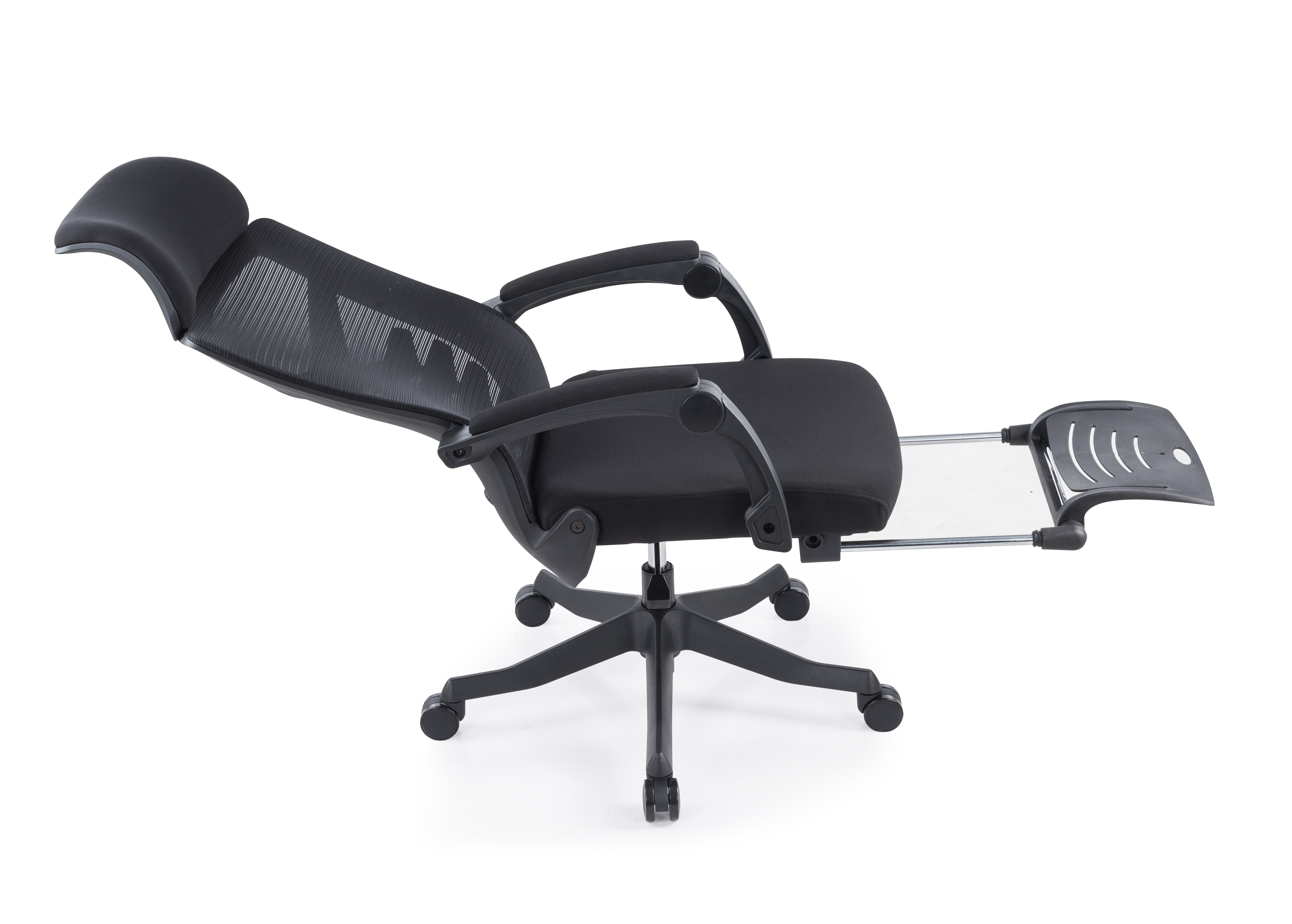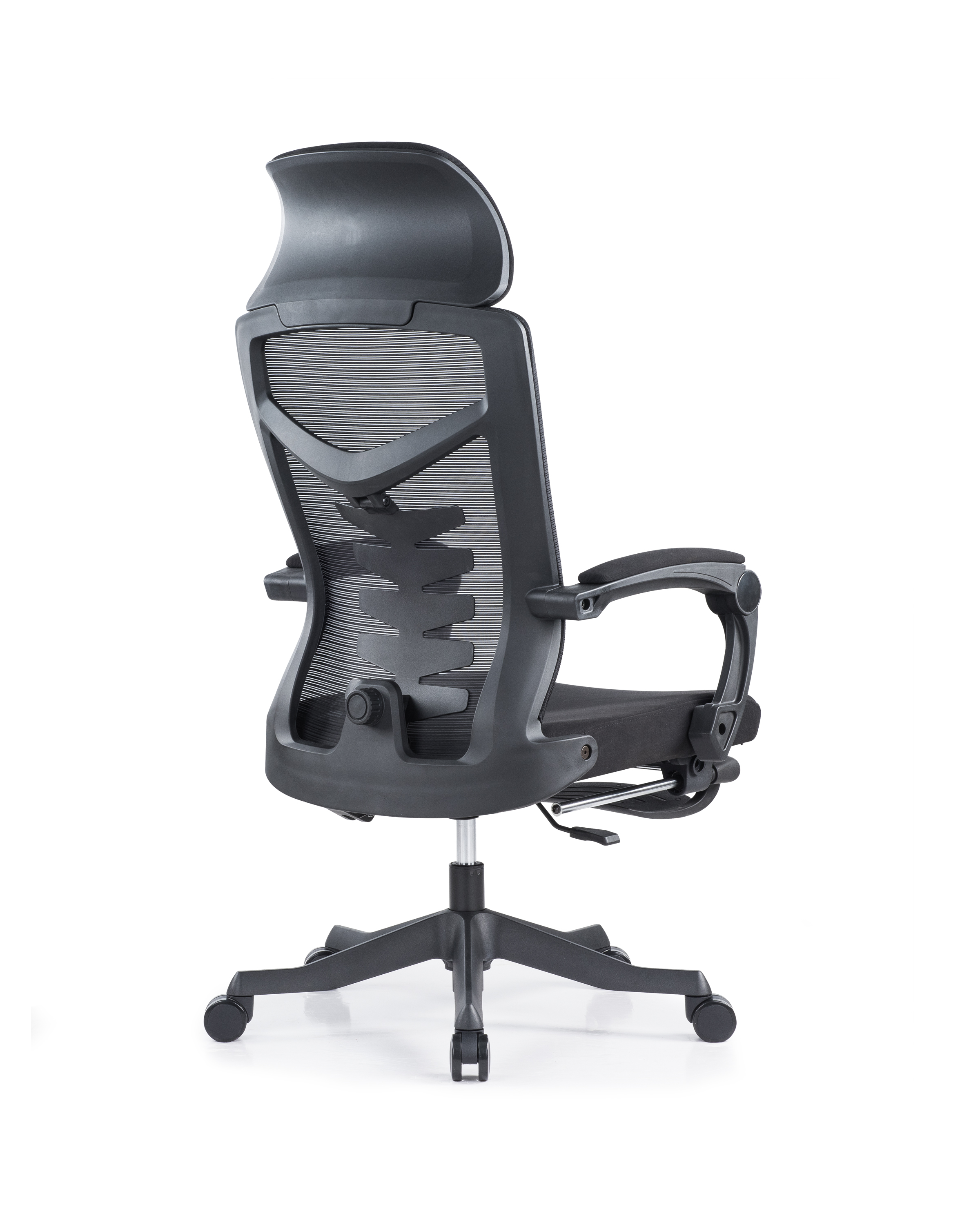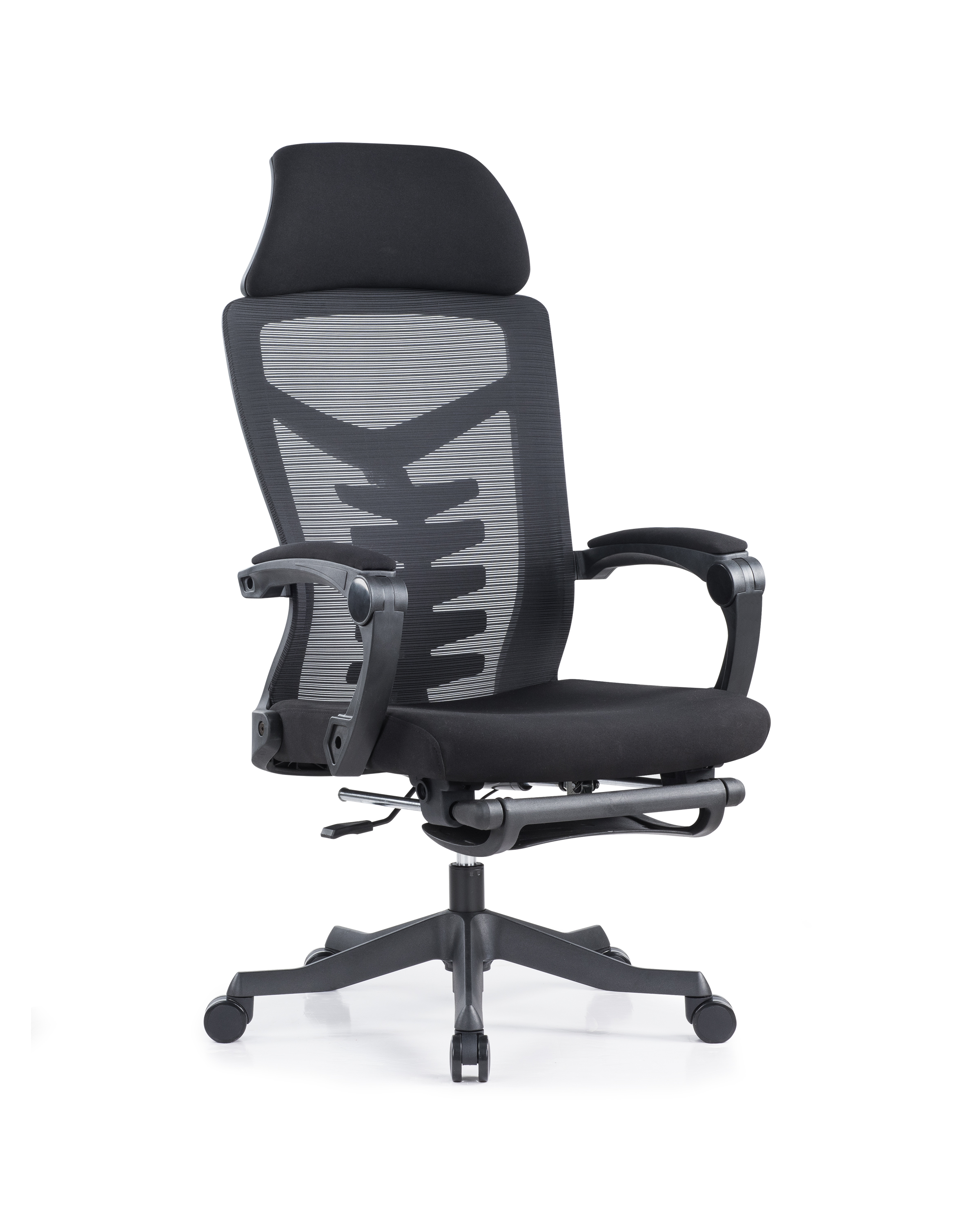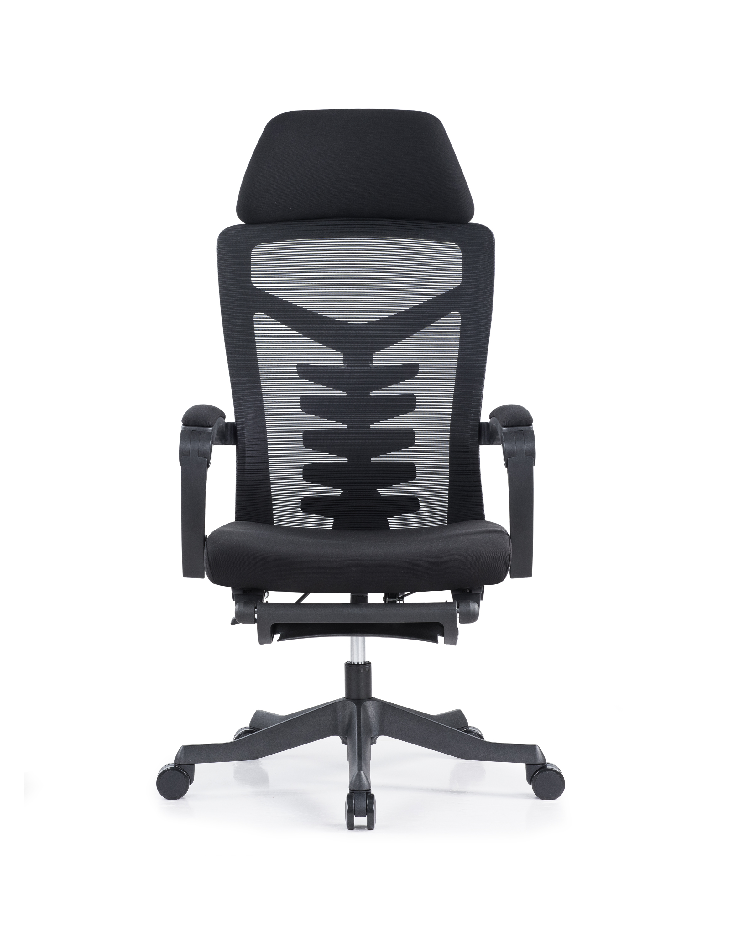 头枕:头枕靠背坐垫采用优质网布,升级大贴面软包头枕,柔软舒适 背框:黑色PA尼龙+玻璃纤维注塑配件,功能鱼骨腰枕,可前后调节灵动支撑,外拉式300N线控气动躺度功能,靠背可任意角度调节,最大可躺170° 坐垫:45#密度原生高弹力切割海绵坐垫,扪高弹力透气网布,安装隐藏式伸缩脚踏 扶手:自适应联动扶手,扶手面扪透气网布,手臂坐躺皆可支撑 气杆:优质黑色三级气压棒 椅脚:高强度345#尼龙脚,注塑一次成型五星脚 轮子:60黑色PU脚轮