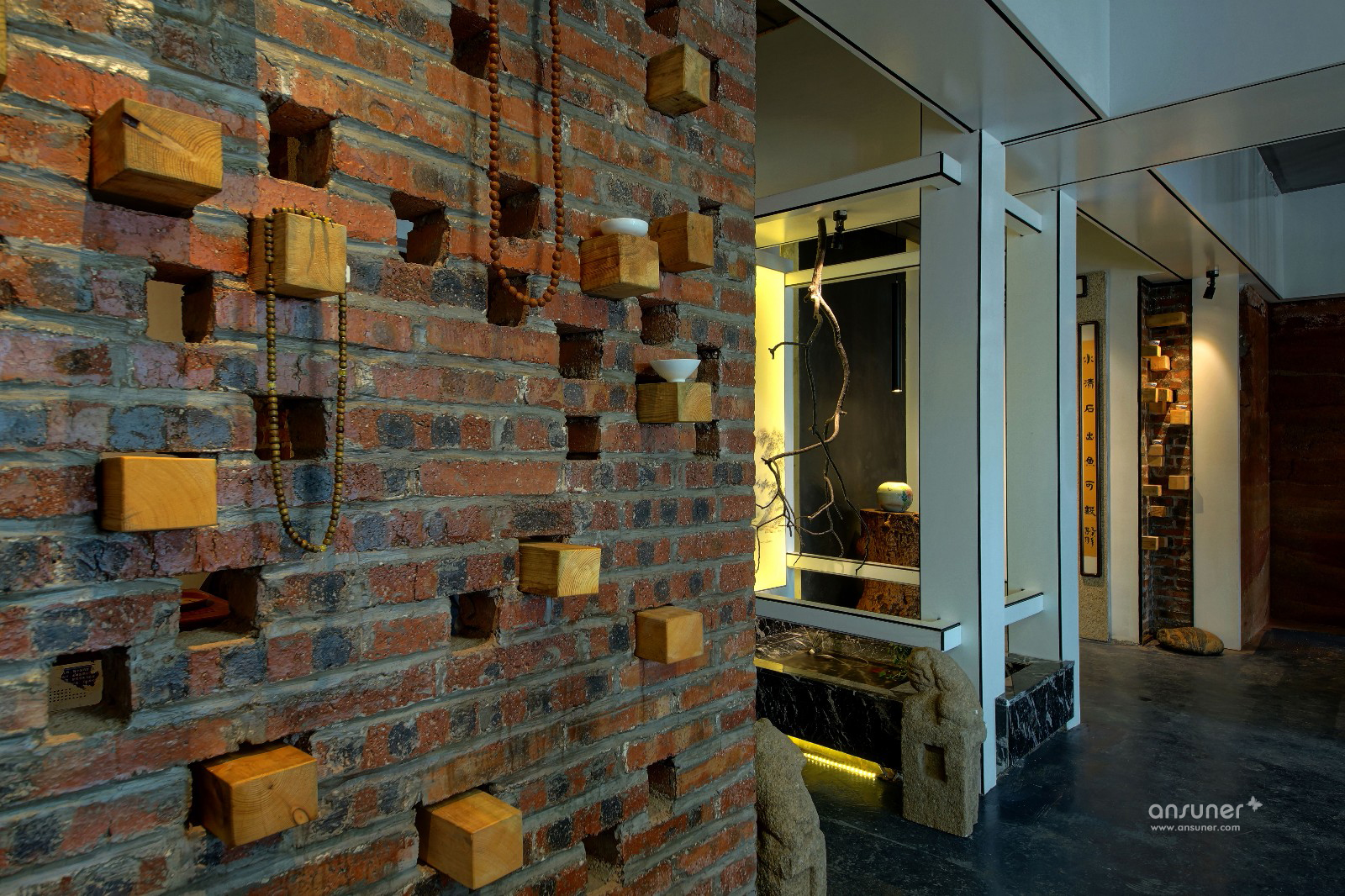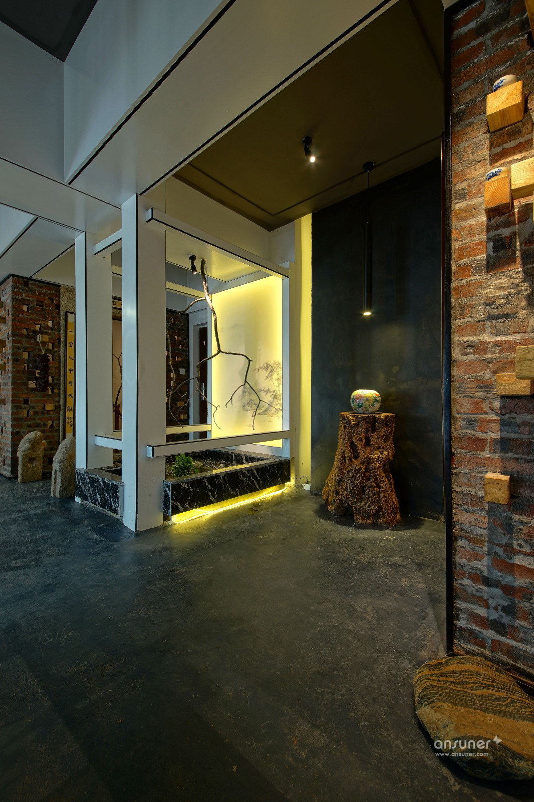 主要材料:自流平、红砖、麻石