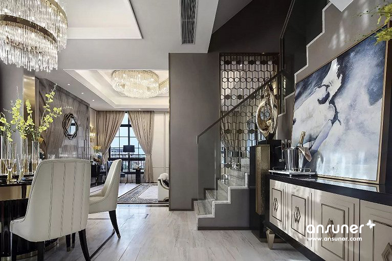 本案设计旨在整合都市的时尚以及知性的氛围,让身处其中的人尽享优雅,让生活时刻哼唱着灵魂的蓝调。