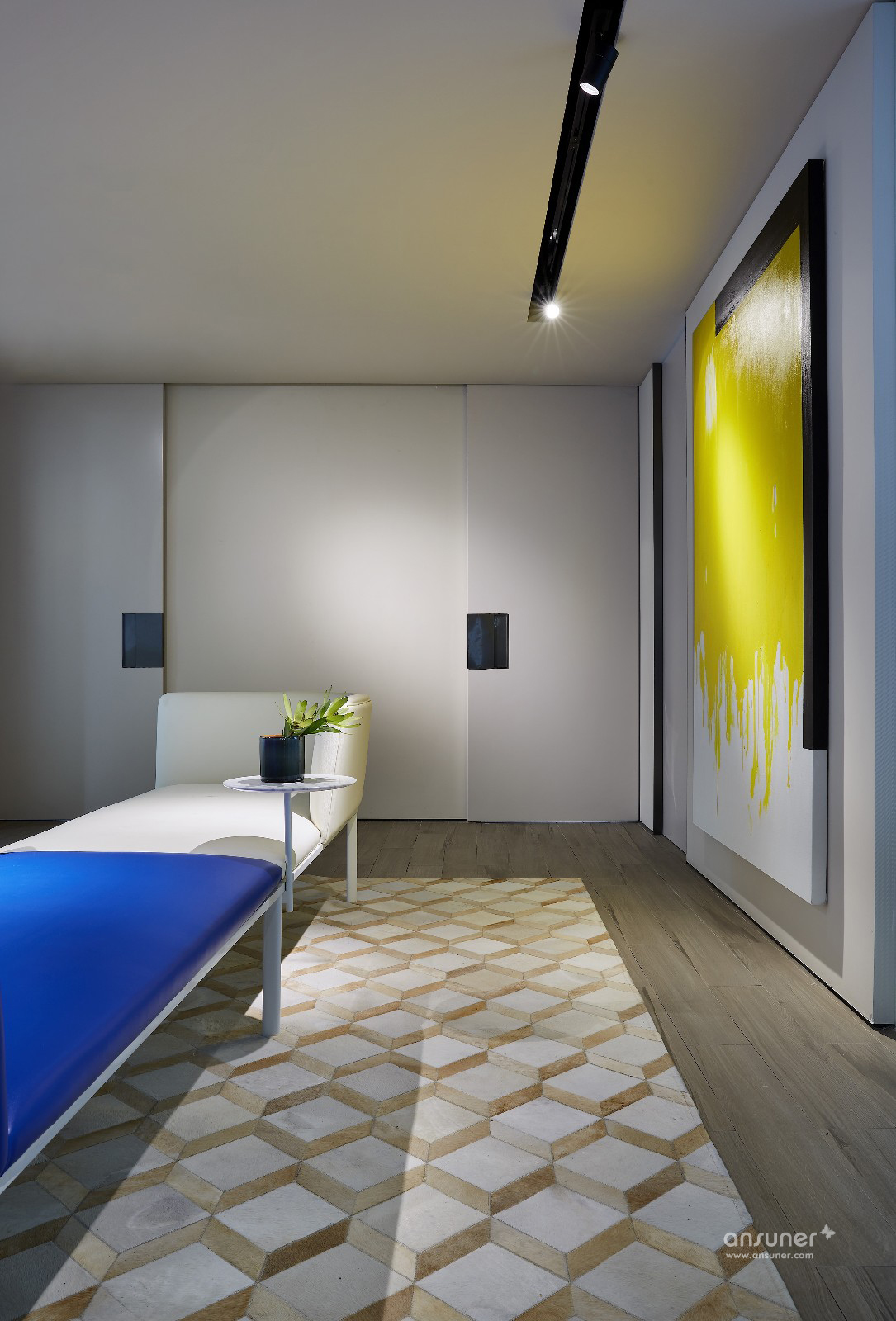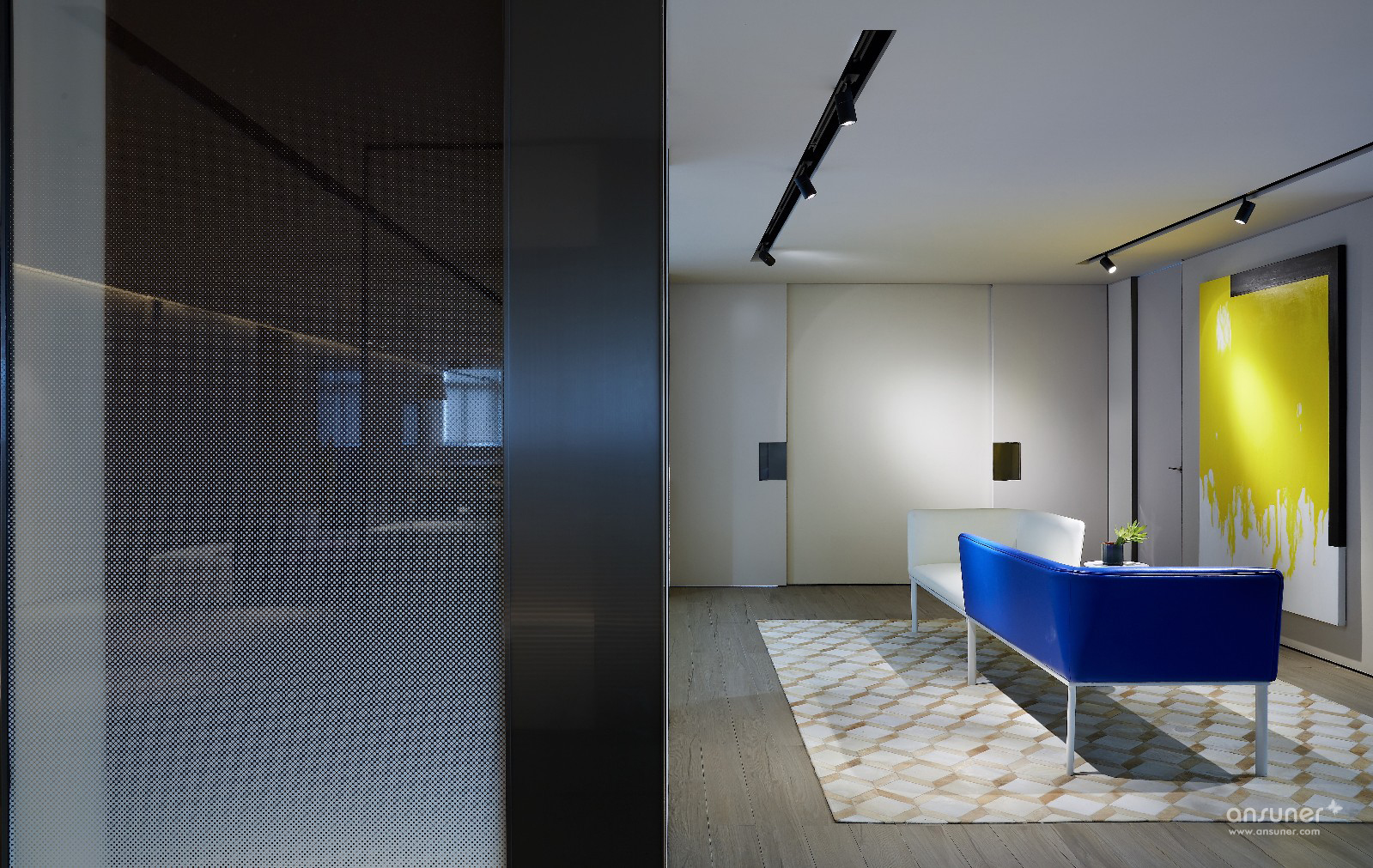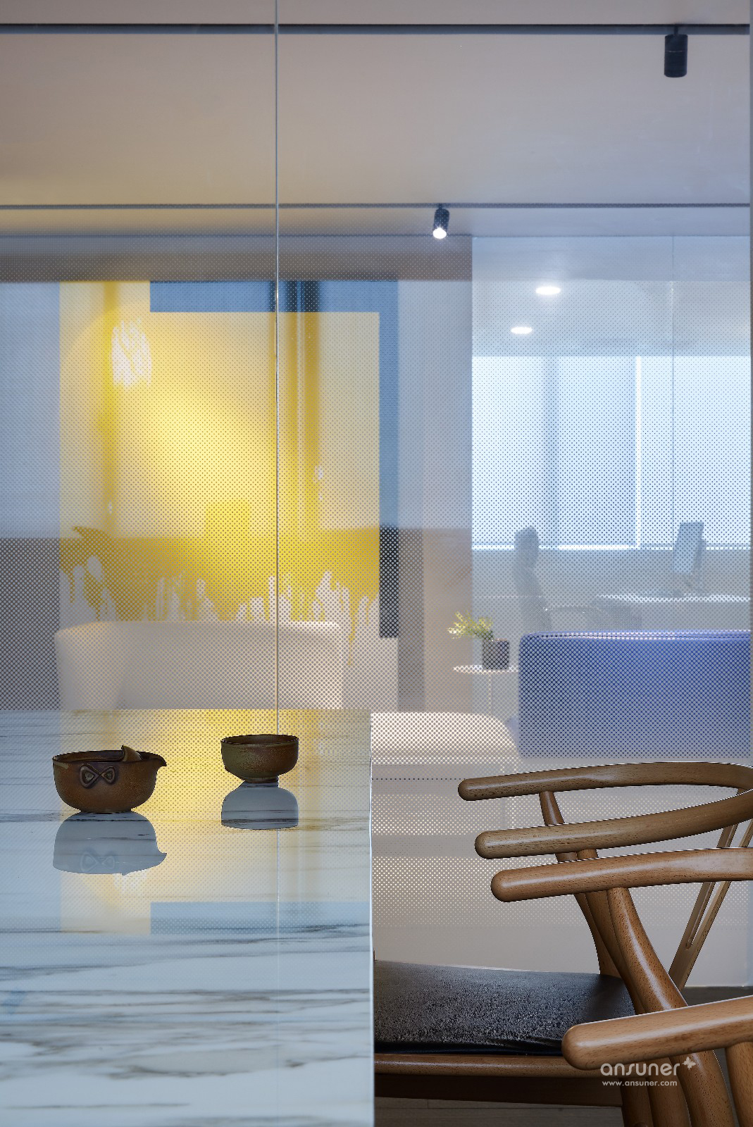 进入空间的一刹那,你就能感受到来自开放的空间氛围以及舒适的光线,从而营造出一个适宜停留的空间感受。室内大面积的留白,严肃安静让人平心静气,跳跃的蓝黄点缀,又带来无限活力。它是一个可以学习也可以用作商业办公的地方,在这里,信任、分享与享受并存。