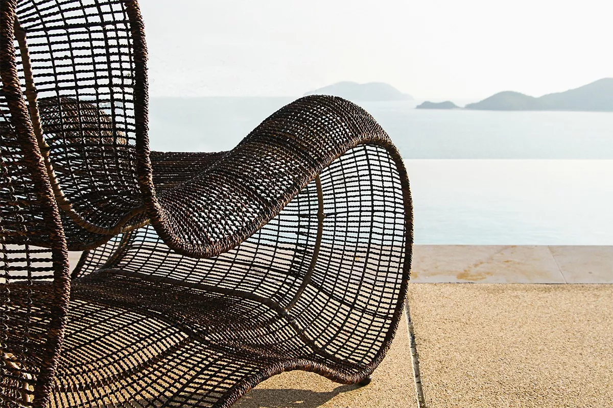 Pigalle背后的灵感源自一个经典的来源:女性身体的轮廓。在手工雕刻的钢架上,用超过3000个绳结将几股蕉麻绳单独手工打结。